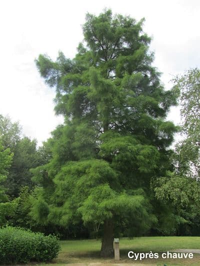 Il est appelé chauve car c’est un des rares conifères à feuilles caduques (autres exemples : le Mélèze le Métaséquoïa). Le feuillage caduc vert clair vire au fauve à l’automne. Les ramilles sont alternes.